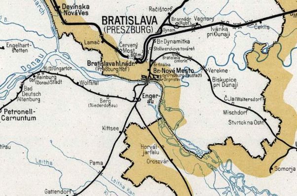 V protiklade s veseliacim sa nemeckým obyvateľstvom Petržalky, v Bratislave, ktorá prišla o svoje predmostie, panovala smutná nálada, ktorú zachytila vo svojej novinovej glose poetka Elena Kamenická (1917 – 1953): „Petržalka … Engerau … Nezmenilo sa nič a závratne mnoho. Za mostom je stále ten istý cukrikar ako kedysi. Ale jeho búda je ozdobená hákovým krížom a nemeckými nápismi. Sú tu tie staré známe ihriská. Ale je nedeľa a sú prázdne. Len toľko sa zmenilo na nich. Mesto samo je stále staré. Iba mnohé domy sú prázdne, slovenské nápisy sú postupne zabielené vápnom. Stoja tu ešte tabuľky: Autobus Bratislava… Ale na domoch vejú červené zástavy s hákovým krížom, ľudia sa zdravia 'Heil Hitler' a autá jazdia vpravo. Len toľko sa zmenilo...“