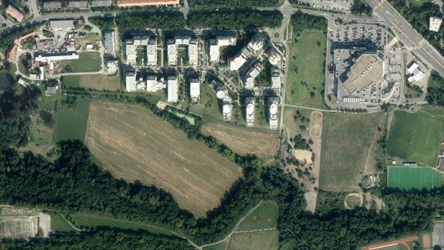 Rychlý městský bodík téměř u koňské ohrady. Nákupní centrum bylo postaveno v letech 1998 až 2000. V posledních letech se hned za obchoďákem pasou koně a probíhají zde tréninky.