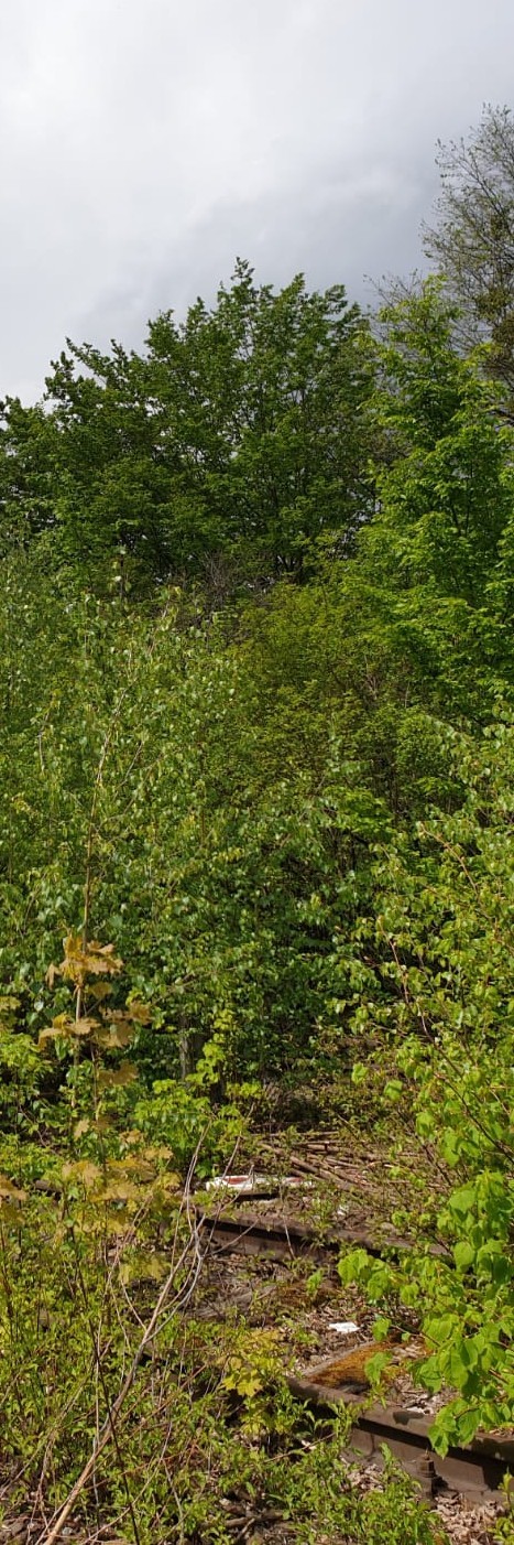 Reste alter Gleise und die Natur, die sich das Gebiet zurückerobert, prägen das Bild.