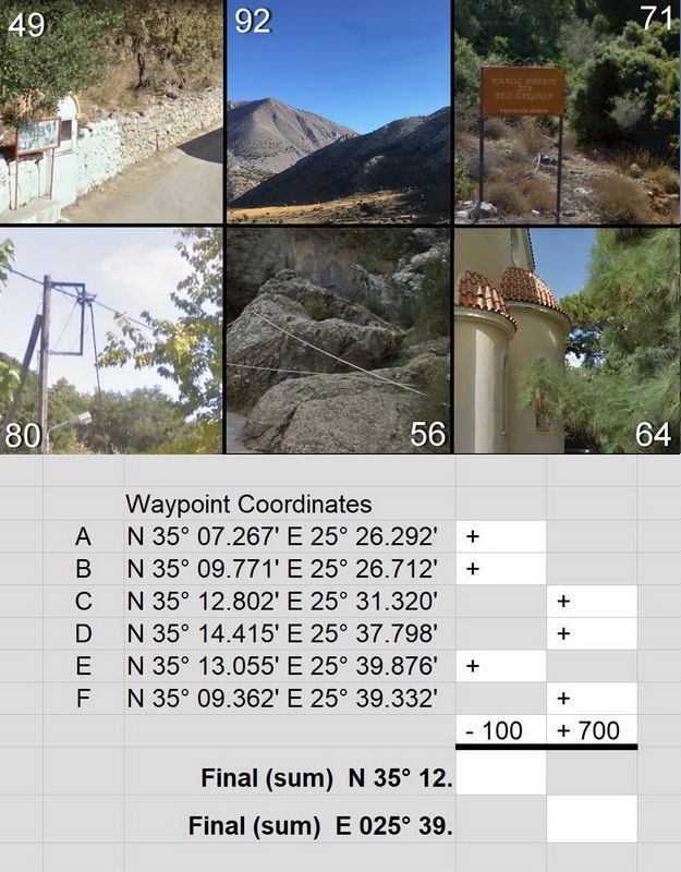 Ρίξτε μια εικονική ματιά στα έξι Σημεία Διαδρομής που προαναφέρθηκαν και θα μπορείτε εύκολα να εντοπίσετε τις έξι εικόνες που τις βλέπετε στην αγγλική λίστα παραπάνω ή στην γκαλερί εικόνων. Εκεί θα βρείτε επίσης το υπολογιστικό φύλλο που θα σας οδηγήσει στις συντεταγμένες του φινάλε.