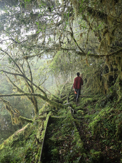 In the early morning of the next day, after the rest and recuperation, the trip to the top of Muku Mountain was ushered in. After walking a section of the railway, the attack began. This section of the road is very comfortable to walk. Surrounded by many giant trees, walking a very soft path covered by fallen leaves. Time seems to have stagnated. Only this mountain and this tree exist in the whole world. Slow down and climb to the top of Mt. Muku. The light rain that had always troubled us was replaced by sunlight. The hills standing on this tri-bemchmark, although there is no sight, are still very worth visiting. Cache is placed in a tree hole. If it disappear when you go, you can place a new one.