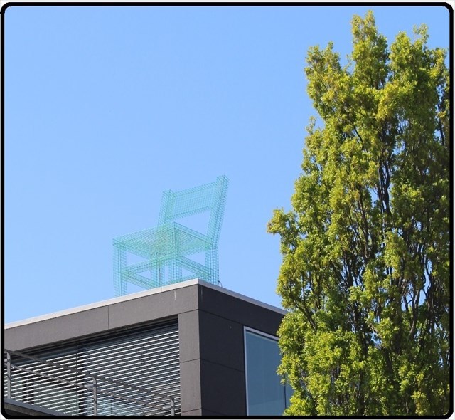 Ja, dieses in Darmstadt beheimatete Kunstwerk gibt dem Begriff ,,Dachstuhl" eine völlig neue Bedeutung. Doch wo in der Heinerstadt steht dieser überdimensional große Stuhl auf dem Dach? Wenn du es herausgefunden haben solltest, dann wirst du vor Ort bemerken, dass auf dem Dach unweit vom Stuhl noch eine weitere künstlerische Figur zu finden sein wird, die durhaus auch den Mittelpunkt dieses Mysterys hätte bilden können. Und zwar ein schwarzes Männchen. Dieses erinnert stark an sein Pardon auf den Dächern der Ausstellungshallen auf der Mathildenhöhe. Dort befinden wir uns aber nicht!