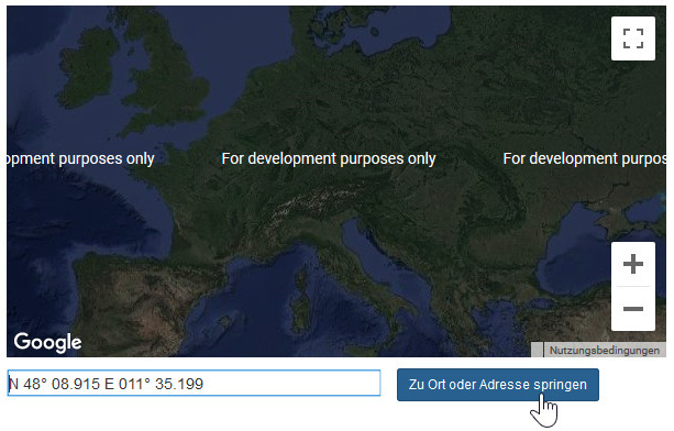 Note von arminus). Ist dieses erreicht, kann man nicht mehr nach Orten suchen, die GoogleMaps-Karten bleiben dunkel und der Hinweis "For development purposes only" erscheint. Die Rätsel sind aber