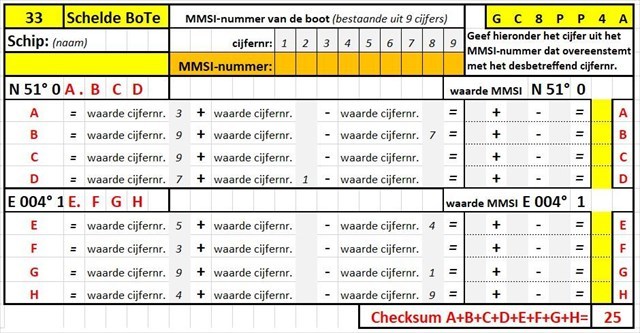 4. Bereken de waarde van de letters A, B, C, D, E, F, G, H, aan de hand van het gevonden MMSI-nummer.