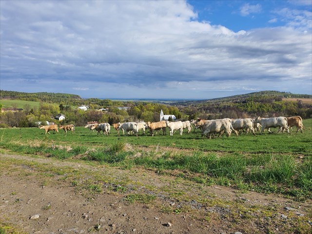 Kolem značky se nacházejí pastviny a můžete potkat i krávy. Tady jsem se pohybovala dost blízko, ale ony byly za ohradníkem a možná se bály víc než já.