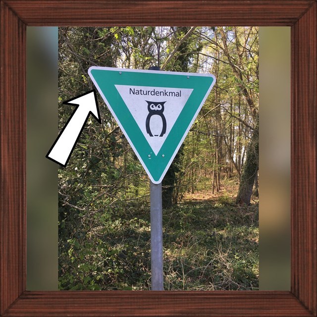 Tipp: Gegenüberliegend könnt ihr eine der riesigen Schönheiten dieses Waldstückchens entdecken und aus einem bestimmten Blickwinkel heraus sogar mit etwas Phantasie darin ein Gesicht erkennen.