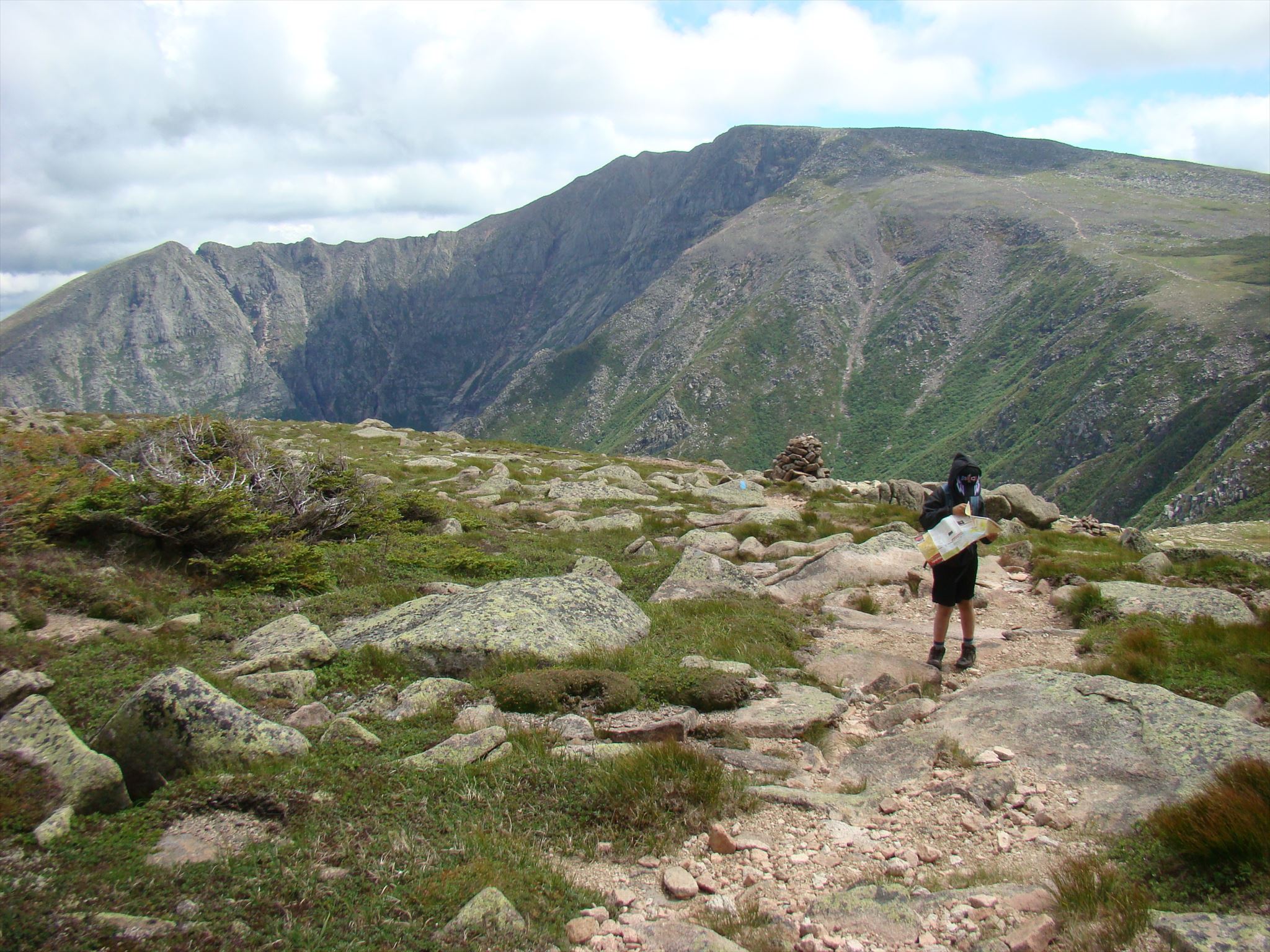 The published coordinates are bogus. Are you able to identify the spot where this hiker is standing? Check your answer below (precision of 20 meters). The true coordinates of the cache will be revealed if your answer is correct. Good luck!