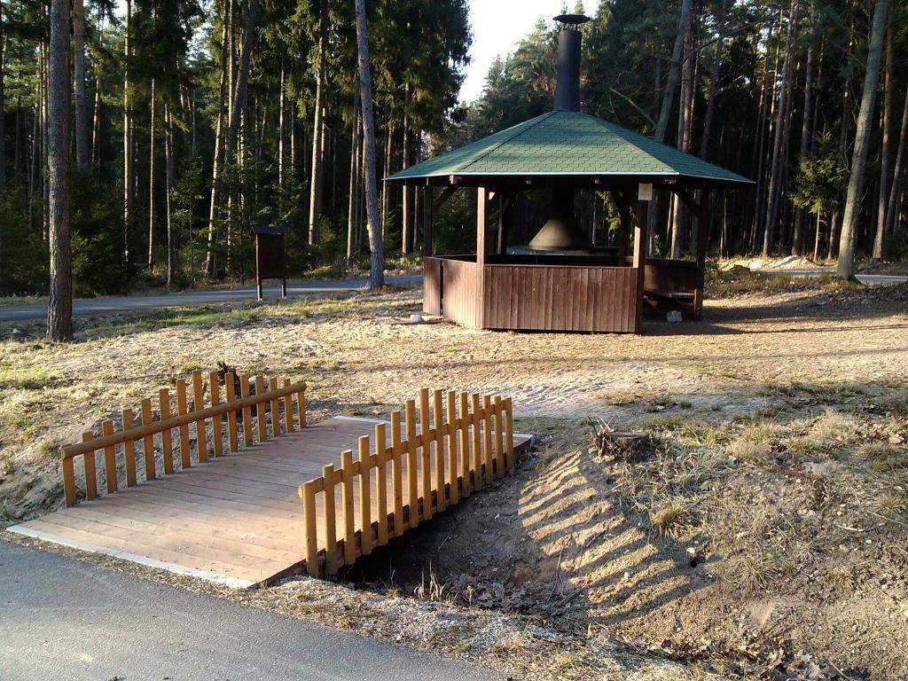 Altán v Novohradeckých lesích s ohništěm u cyklostezky - zde se koná event