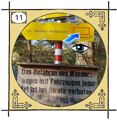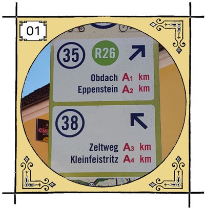 Hier kommt ihr an einem Wegweiser vorbei. Wie viele Buchstaben zählt ihr auf BEIDEN Tafeln? (ohne Alpenverein Judenburg) Dies ergibt H.