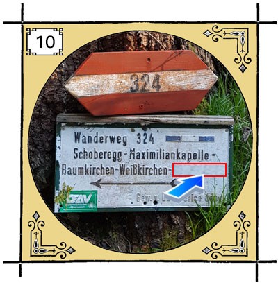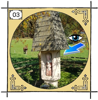 Vor diesem Hof findet ihr ein wunderschönes Marterl, das auf der Rückseite eine Jahreszahl trägt. Um C zu erhalten, bildet die Ziffernsumme dieser Jahreszahl.