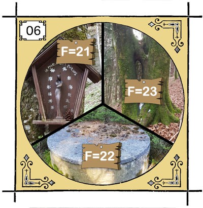 Ihr steht vor einem schönen Marienkreuz mit Sitzbank zum Ausrasten. Die Anzahl der ROTEN Buchstaben auf der Tafel liefert euch G!