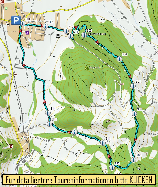 Ausgangspunkt für die Wanderung ist der Hauptplatz Weißkirchen - nähere Informationen zur Tour selbst gibt es hier: