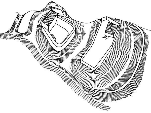 Náznak opevnění na východní a západní straně
