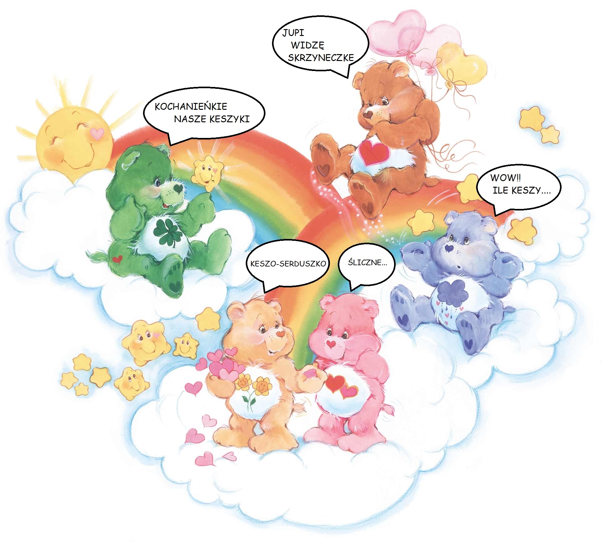 - Miśka (ang. Share Bear) – misia koloru fioletowego. Jej znaczkiem jest koktajl z sercami.