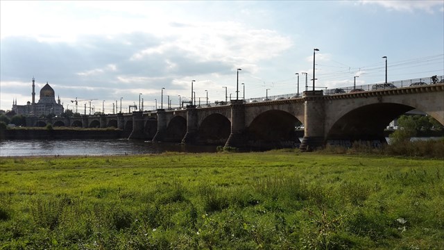 Blick zur Marienbrücke vom Neustädter Ufer