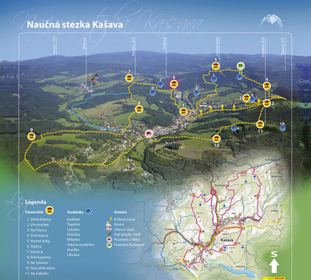 Vítejte ve Vesnici roku 2016 a na její „Naučné stezce Kašava“. Máte možnost udělat si asi 17 km dlouhou tůru kolem Kašavy a přitom navštívit třináct zajímavých míst. Na každém je posezení s informacemi. Můžete se těšit na krásnou valašskou přírodu, která má své osobité kouzlo v každé roční době. Přejeme hezký výlet. A nezapomeňte - na Valašsku je to pořád do kopce a jenom někdy skopce.