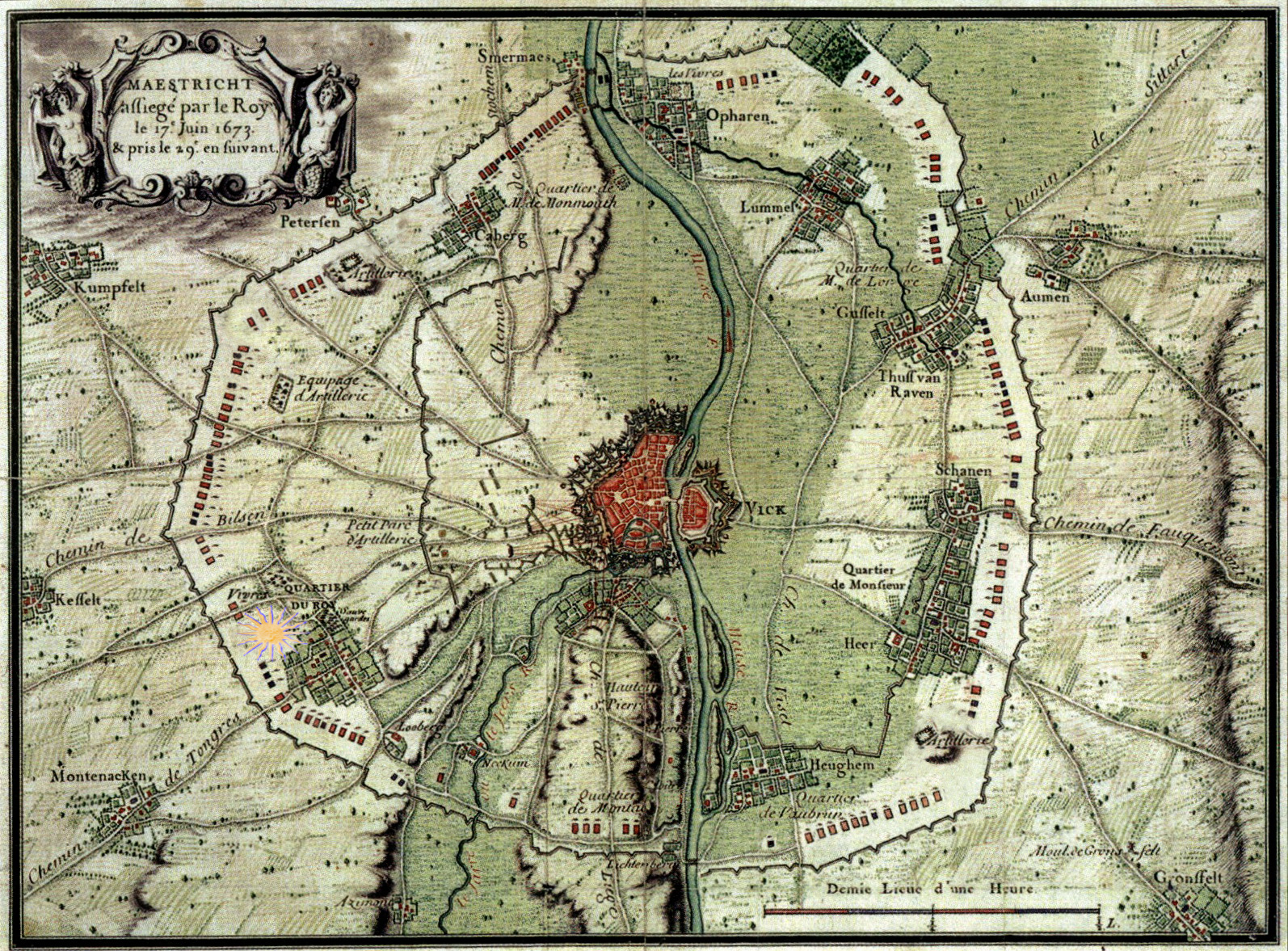 Bij de Franse belegering van Maastricht in 1673 speelde de franse koning Lodewijk de 14de (de Zonnekoning) de hoofdrol.