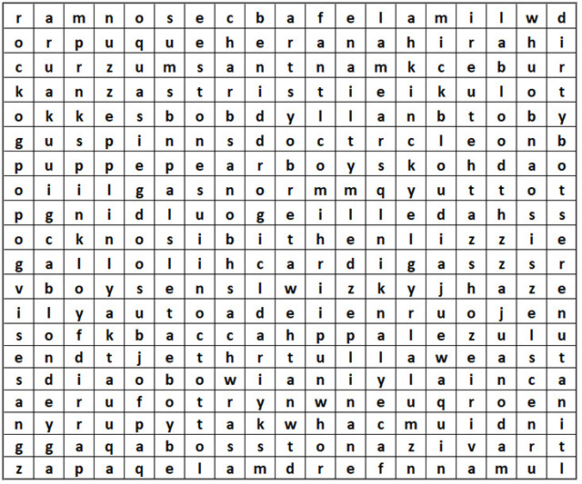 Here I am looking for a song, originally produced by another of my all-time favorite bands. More recently it has been covered very successfully by a more “contemporary” artist. In the letter matrix below, the names of both the band and the artist are hidden. Note that spaces don’t exist here, so if it was Bob Dylan it would read bobdylan. You need to read up and down, from left and right, but I have not been evil enough to go diagonal. If you come across other real music related names, please let me know!