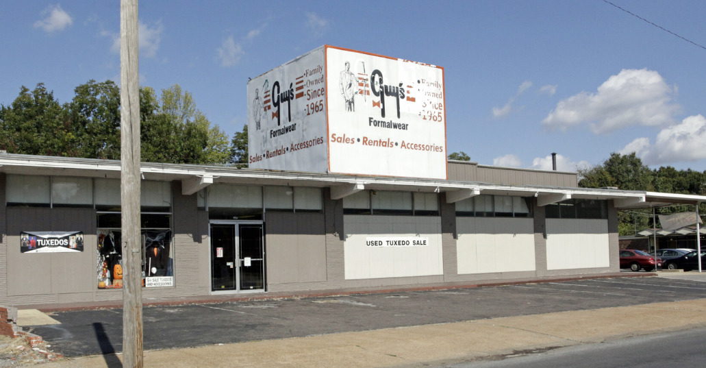 “Iconic” may not quite be the right word, but “recognizable” would definitely work. Some Memphians may remember this building as a Guy’s Tuxedo, which it was for a long time. But years before that, this spot at 3580 Park Avenue with the large square block on the roof was actually a Fleming Furniture store. Take a look!
