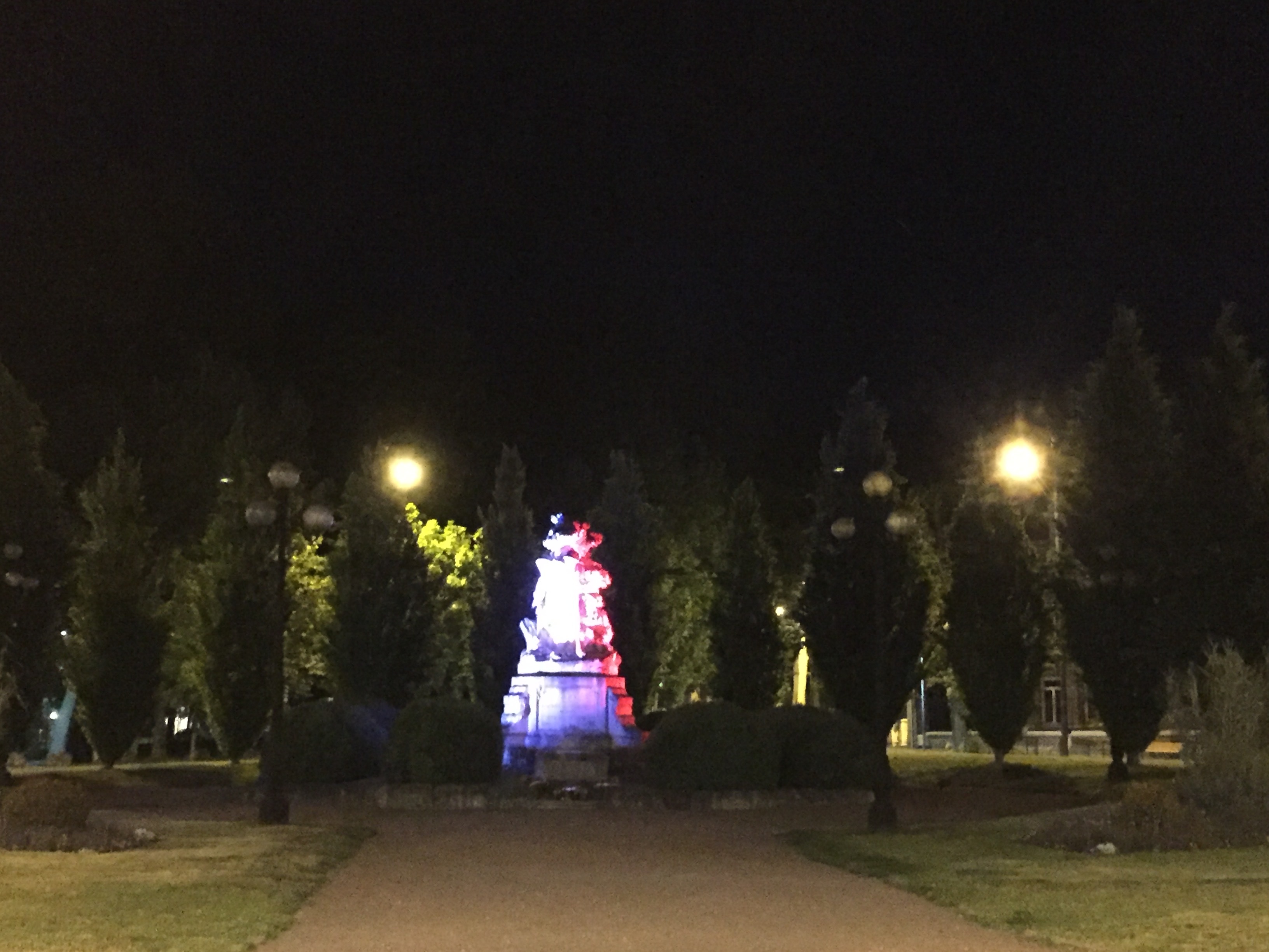 Il est à noter que la cache ne se trouve pas sur la place car il n’y a pas d’accès piéton permettant de traverser le rond-point. Cependant vous serez plus tranquille de nuit pour admirer les couleurs tricolores, et aussi loguer la cache sans attirer l’attention.