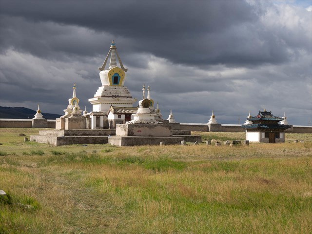 Bild 5: Wie viele Stupas "krönen" die Umfassungsmauer dieses Klosters?