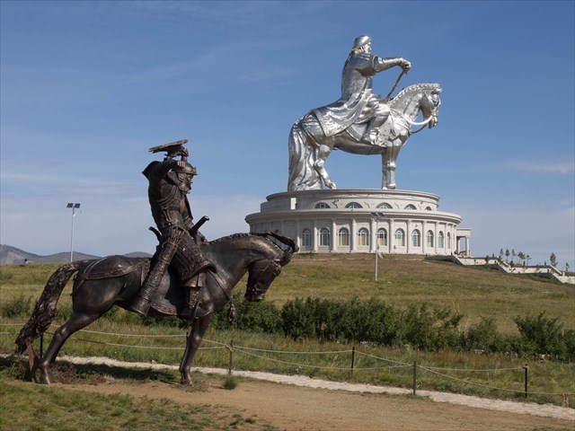 Bild 6: In welchem Jahr begann die Regierungszeit des auf der hinteren, größeren Statue dargestellten Herrschers?