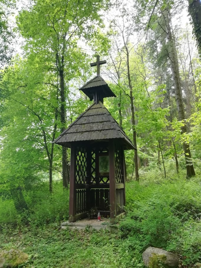 Rád bych vám ukázal zajímavou kapličku na kraji lesa. Zajímavá je nejen tím, že je dřevěná (většina kapliček je zděných), ale také svým neobvyklým provedením. Původní dřevěná kaplička byla postavená křižovnickým personálem asi v roce 1920 v upomínku na zemřelou dceru lesního.Kaplička byla v roce 2002 obnovena.