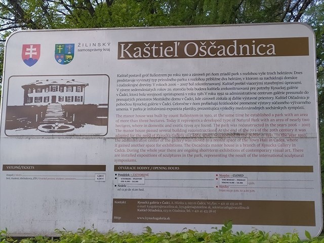 Kaštieľ Oščadnica alebo Kysucká galéria v Oščadnici vznikla v roku 1981 z iniciatívy rodákov a priateľov Kysúc – JUDr. Antona Blahu a dvanástich výtvarných umelcov ( Stanislav Biroš, Miroslav Cipár, Anton Čutek, Milan Greguš, František Hübel, Vojtech Ihriský, Milan Mravec, Pavol Muška, František Ondro, Milan Paštéka, Jozef Sušienka, Ondrej Zimka), ktorí v roku 1975 usporiadali výstavu „Pozdrav umelcov rodnému kraju“ a 66 diel venovali ako základ galérie. Od začiatku svojej činnosti buduje zbierkový fond, ktorého základom sa stal spomínaný súbor diel venovaný najmä kysuckými výtvarníkmi. Významným akvizičným činom bolo zakúpenie pozostalosti Františka Hűbla. Najnovším prírastkom väčšieho rozsahu sa stal dar JUDr. Antona Blahu a manželky, venovaný pri príležitosti 20. výročia založenia galérie.