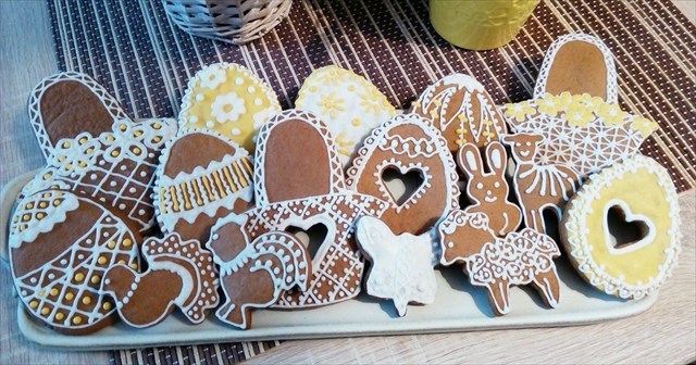 Kdo chce mít perníčky tmavší, může do těsta přidat trochu kakaa. Perníčky pečeme v troubě vyhřáté na 180 °C. Aby se perníčky pěkně leskly, potíráme je ihned po upečení rozšlehaným vajíčkem.