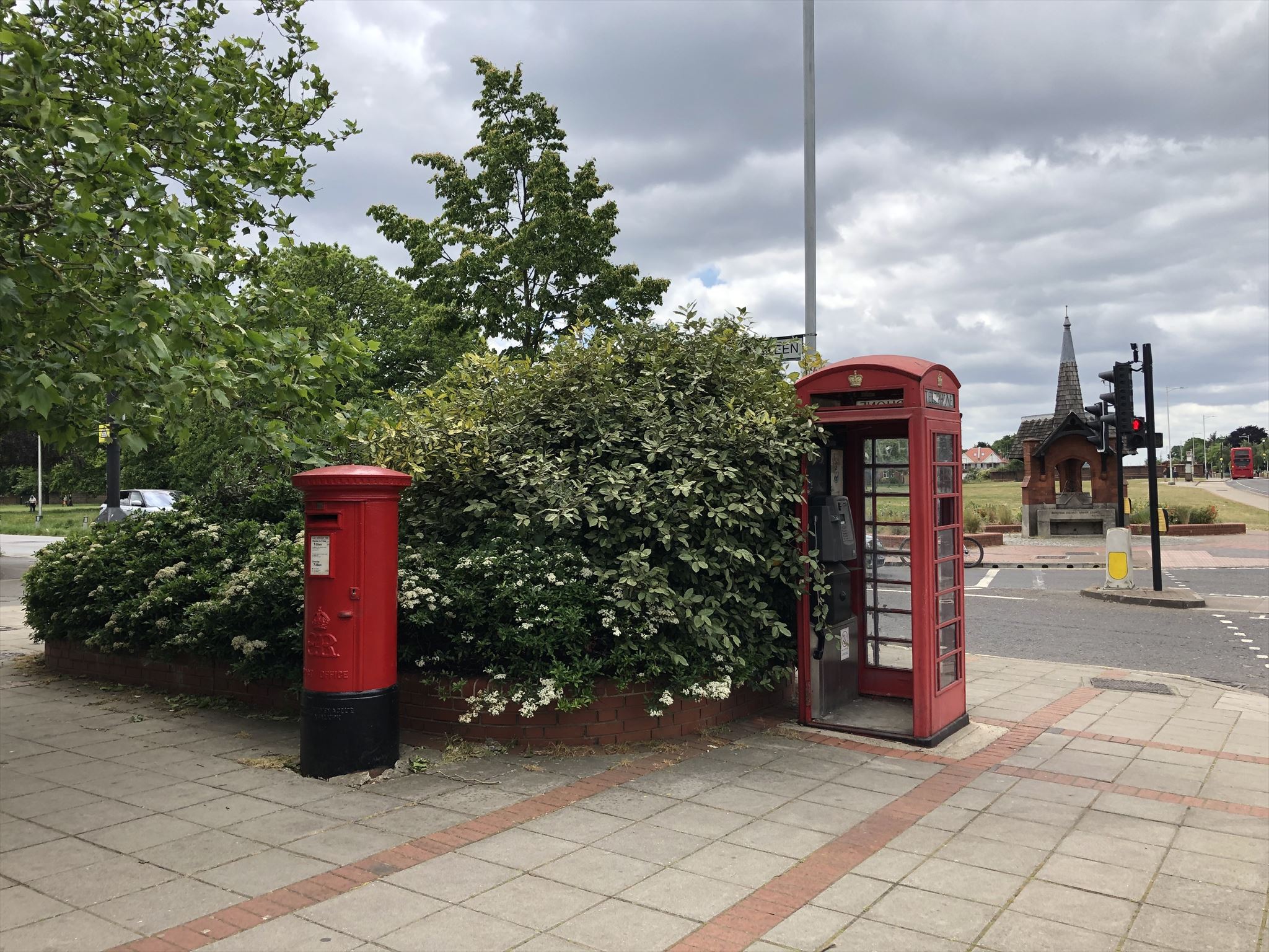 Number 1460 in a series of caches where a red telephone box is in close proximity to a post box.