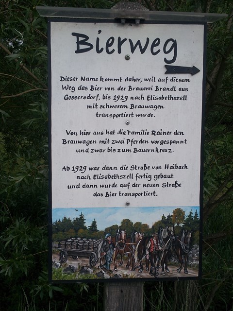 Der Name kommt daher, weil auf diesem Weg das Bier von der Brauerei Brandl aus Gossersdorf bis 1929 nach Elisabethszell transportiert wurde.