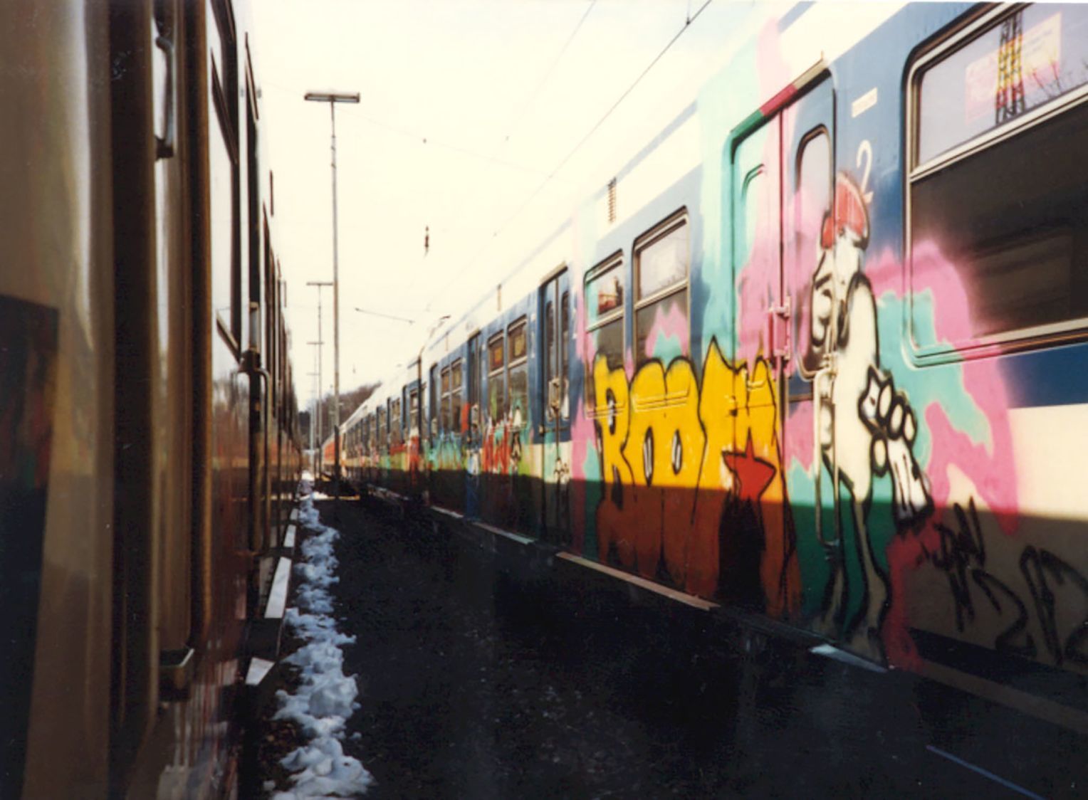 Im Jahr ABCD besprühten 7 Jugendliche in E... (gesucht wird natürlich nur der 1. Buchstabe des Ortsnamen) den ersten "Wholetrain" in Deutschland. Siehe Originalbild unten.