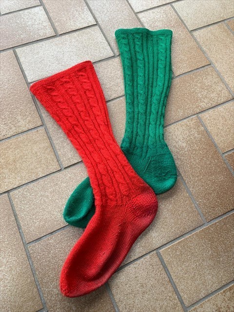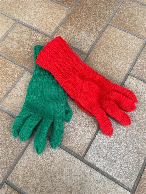 Die Farben der Strümpfe und Handschuhe sind rechts jeweils grün und links rot.