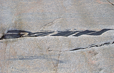 Diesen Vorgang kann man an dem Gestein (Findling) sehr schön erkennen.