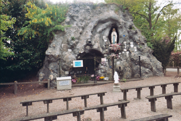 De Mariagrot is één van de vroegste voorbeelden van een lokale interpretatie van een Lourdesgrot. Ze kwam tot stand als schenking van de familie Piers de Raveschoot, eigenaar en bouwheer van het kasteel van Olsene.