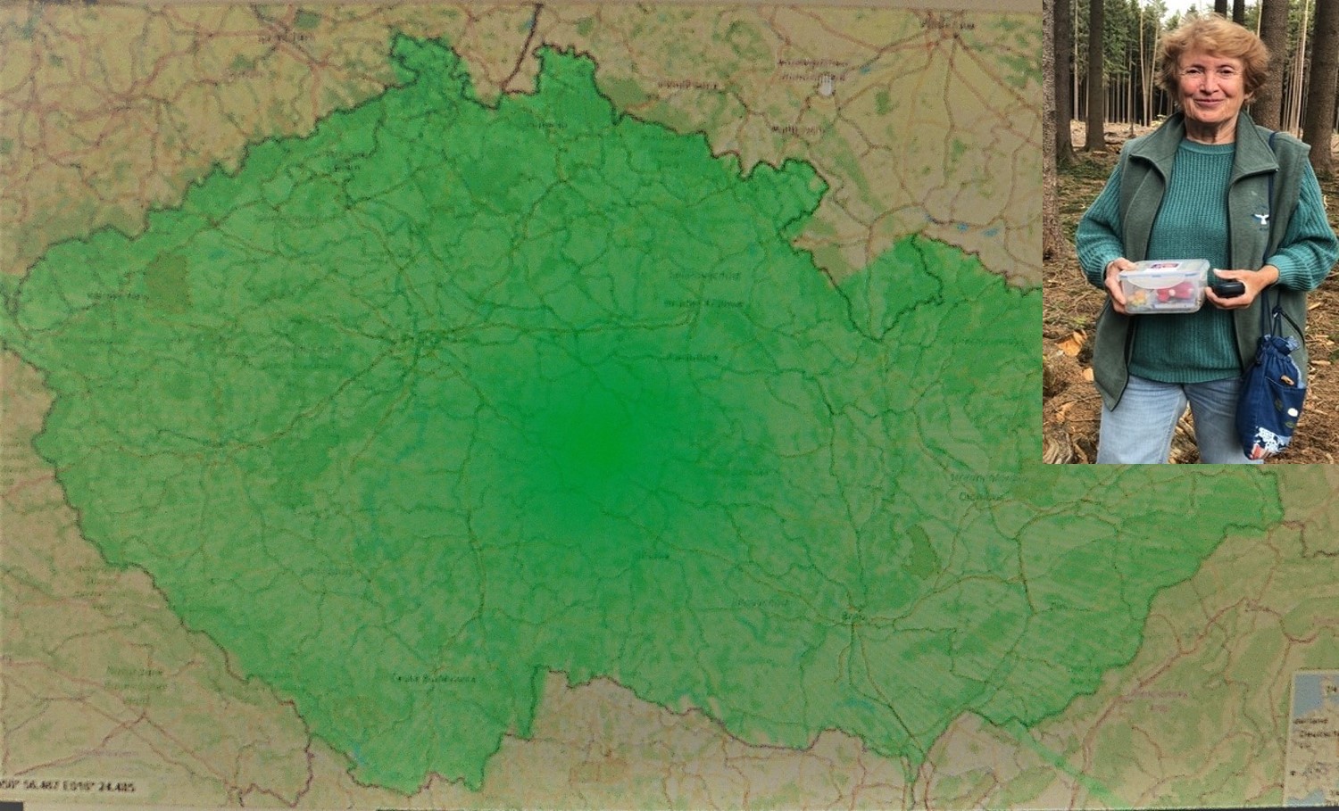 Houbařka je aktivní celý život, v posledních letech nejčastěji jezdí na kole. Proto je keš umístěna tématicky u cyklostezky.