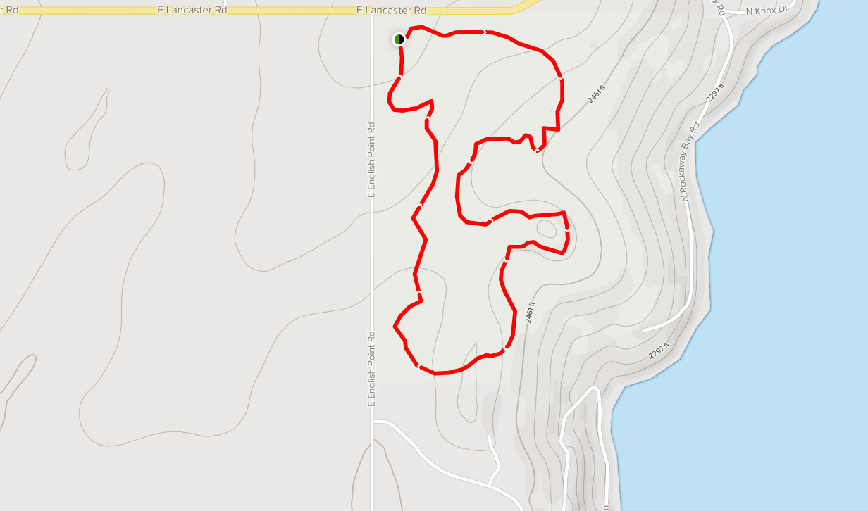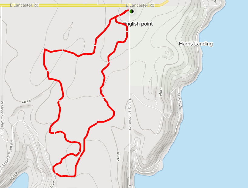 English Point RED LOOP Trail is a 1.6 mile moderately trafficked loop trail that features a lake and is good for all skill levels. There is a smaller GREY LOOP that is .8 miles, as well as other trails crisscrossing the main trails throughout the area. There are trail maps and arrows at the junctions and all along the trails.