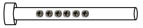 Zoek de “Schroef” en bepaal het totaal aantal centimeters van de schroeven (bovenkant hout tot bovenkant schroef kop), per schroef afronden op een halve centimeter.