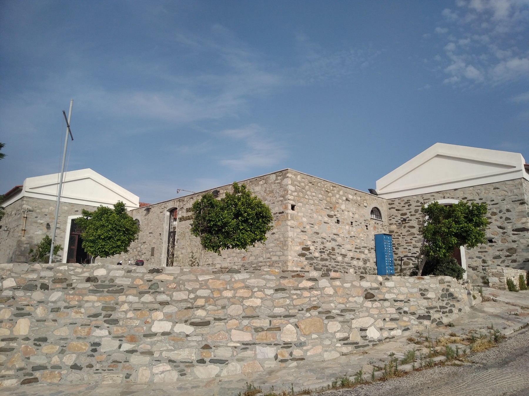 The building used to be the old monopoly warehouses in the Lazareta area of Ermoupolis, which were converted into a small theater. The Evanthia Kairi Theater is mainly used by local cultural institutions and organizations, both for rehearsals of theatrical performances and other events. After the recent completion of the operations inside, it is used more often.