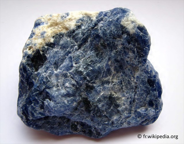 Sodalite: Sodalite is a mineral from the group of silicates, rich in sodium (hence its name) and aluminum. It can be colourless, grey, pink, blue. Crystals are rare. Sodalite is almost always massive. Under ultra-violet lighting, this rock is fluorescent.