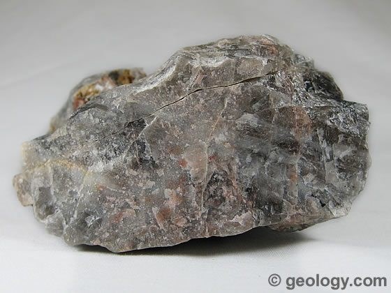 It can contain other minerals such as biotite, pyroxene, amphiboles, sodalite, plagioclase or nepheline. The presence of these minerals can modify its colour (grey, pink, red, purple and sometimes almost black).