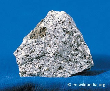 Syénite : Cette roche multicolore est d’origine magmatique plutonique. Elle est grenue, riche en feldspath alcalin gris-blanc. Son nom vient de Syène (actuellement Assouan en Égypte) où elle fût découverte.