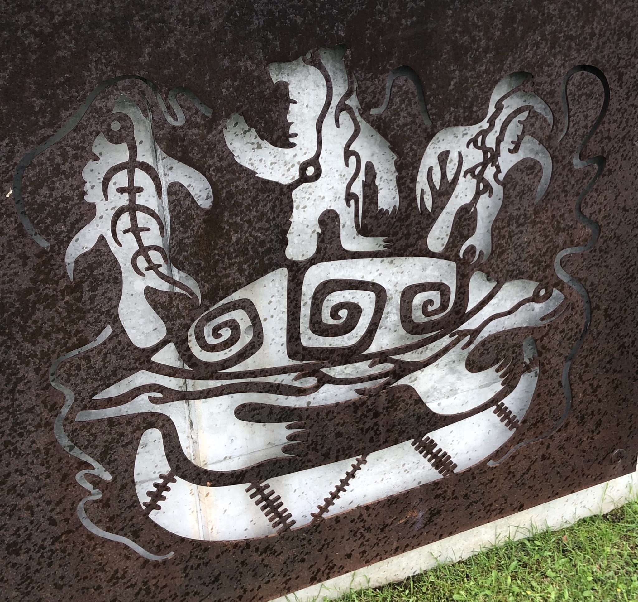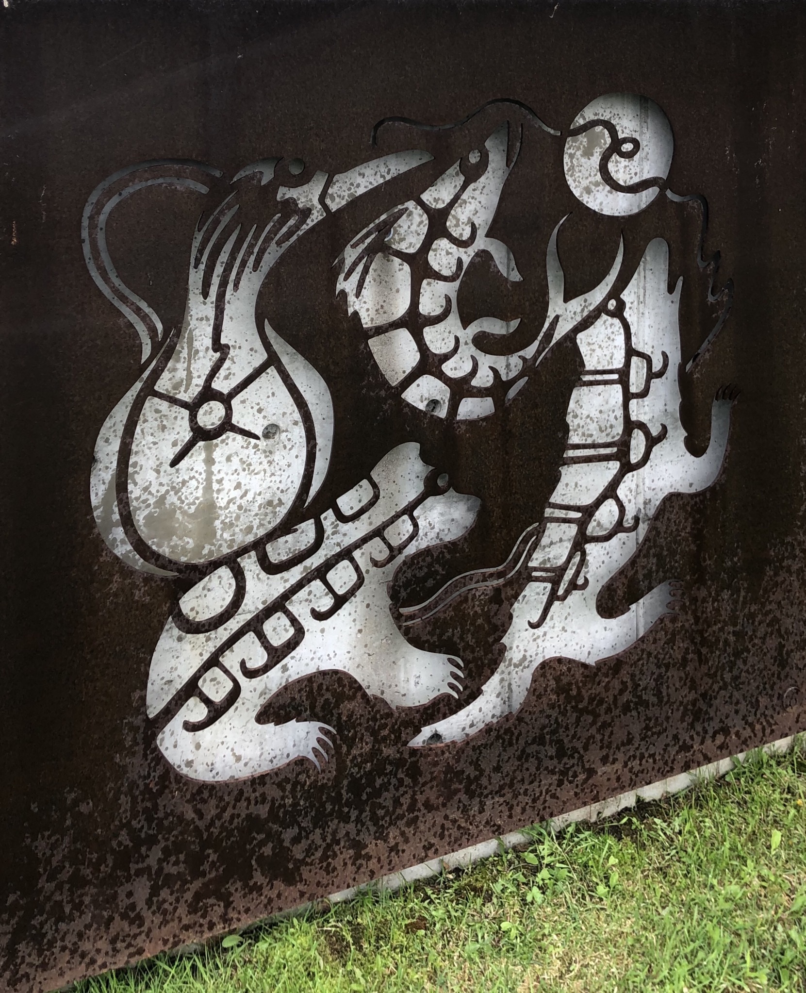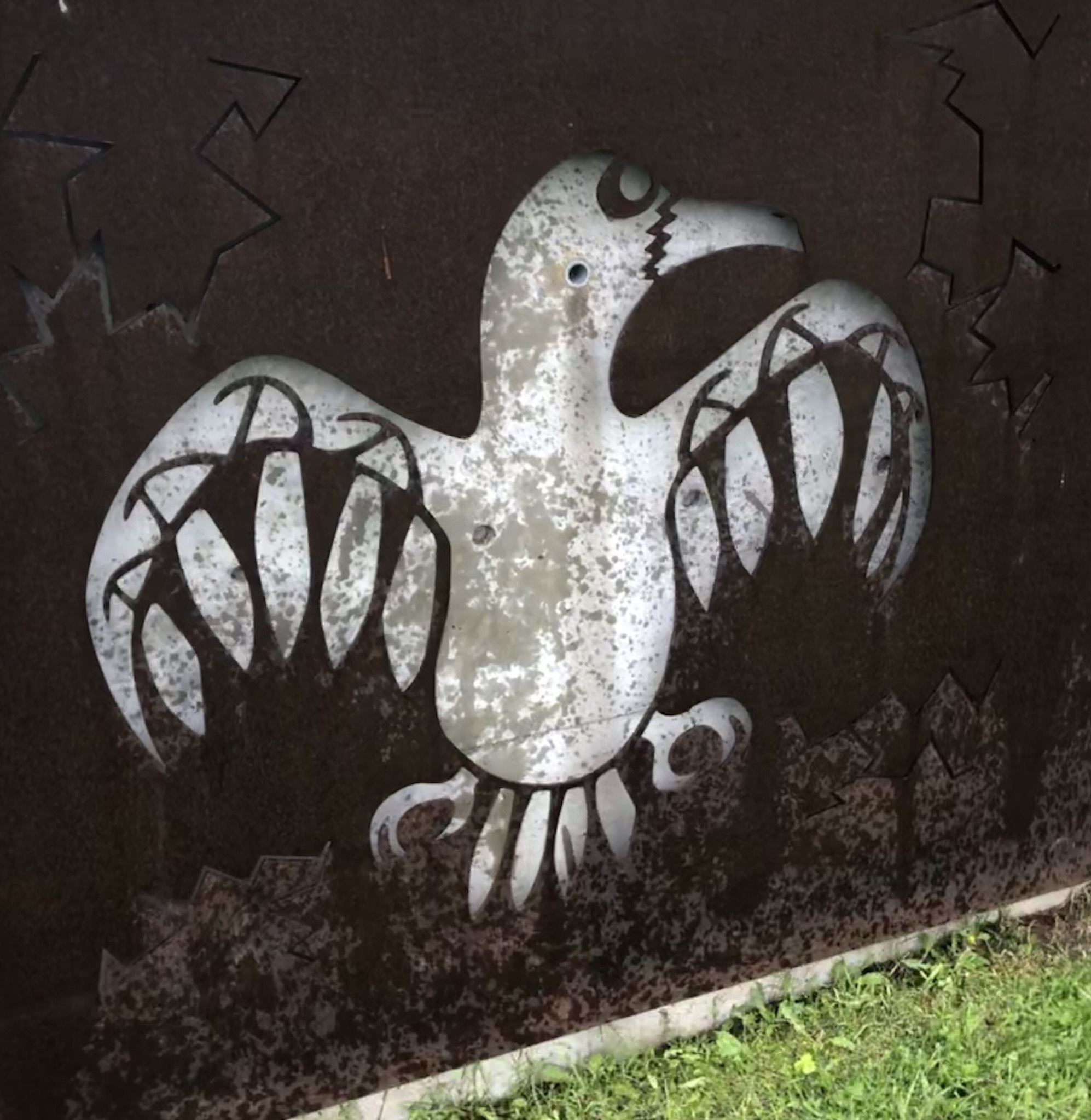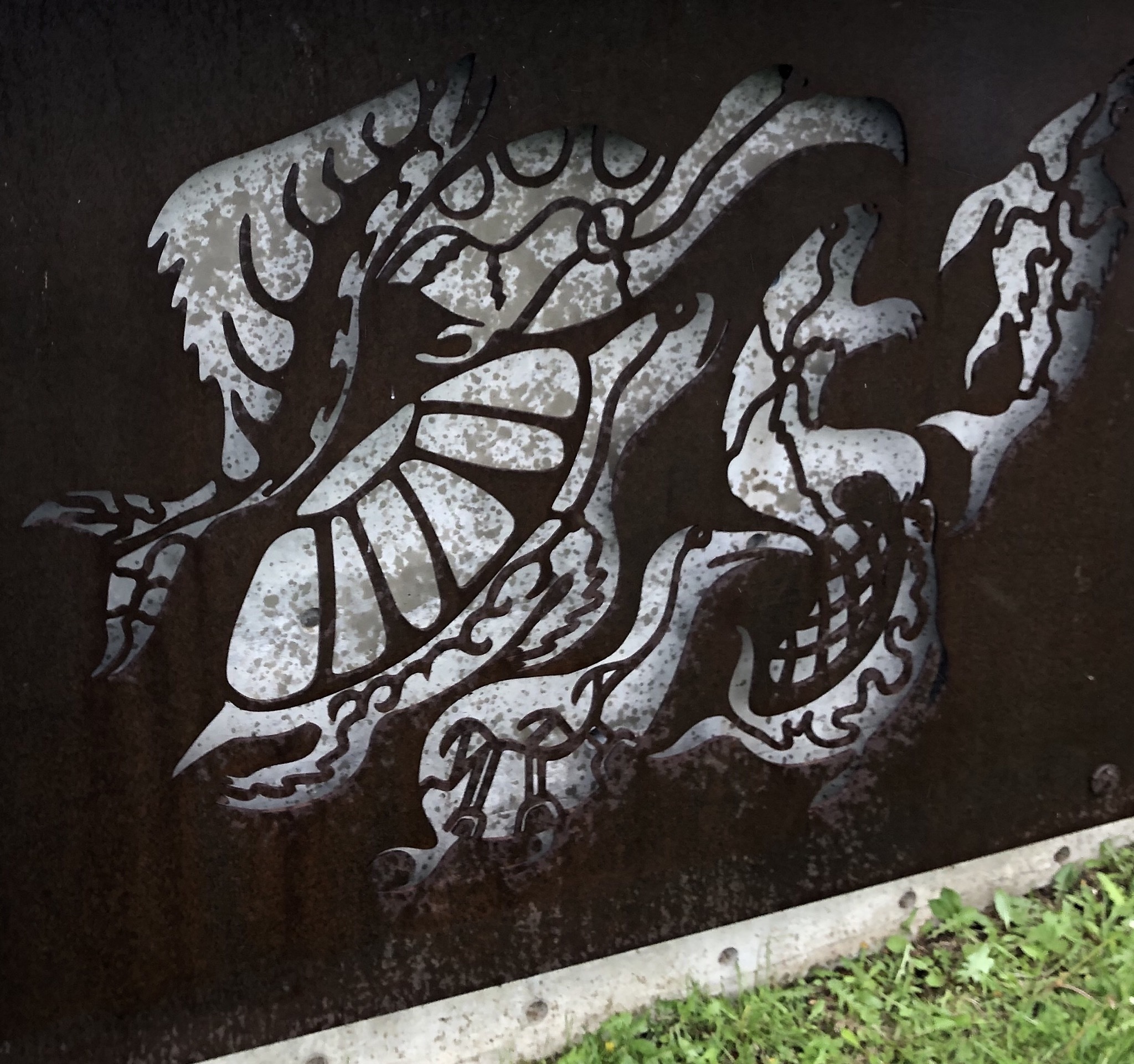 At the posted coordinates is a series of art panels within the Spirit Garden. A metal sheet affixed to the left end provides descriptions and numerical values of each panel. Using the numerical values 1-9 that are assigned to each panel, the cache can be found a short distance away at: