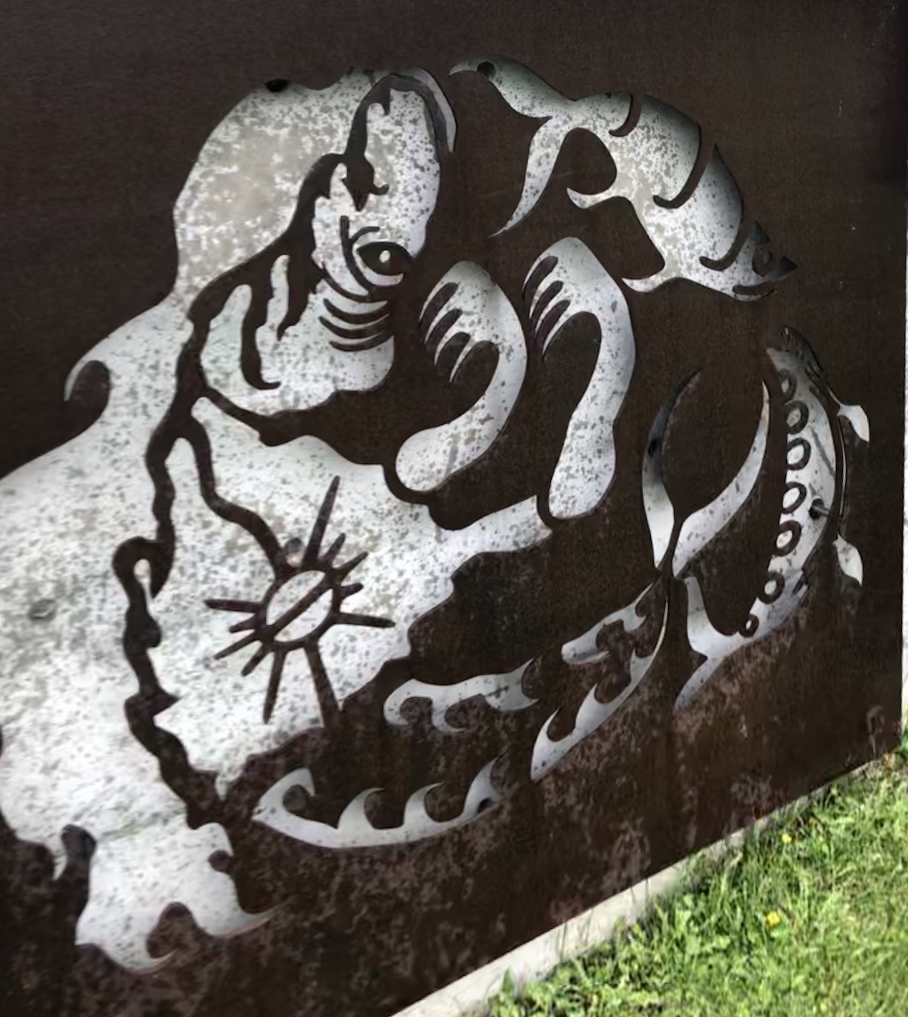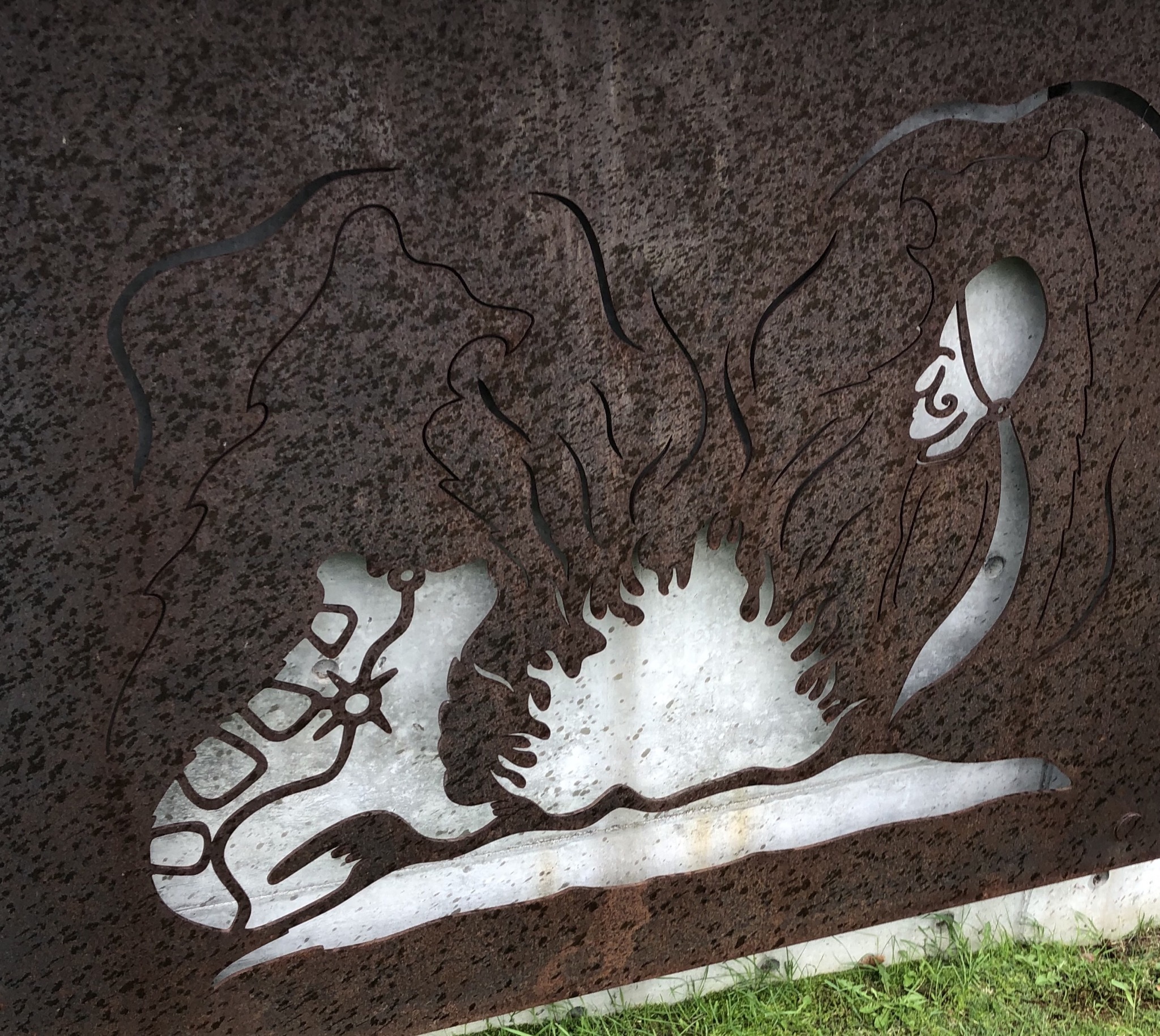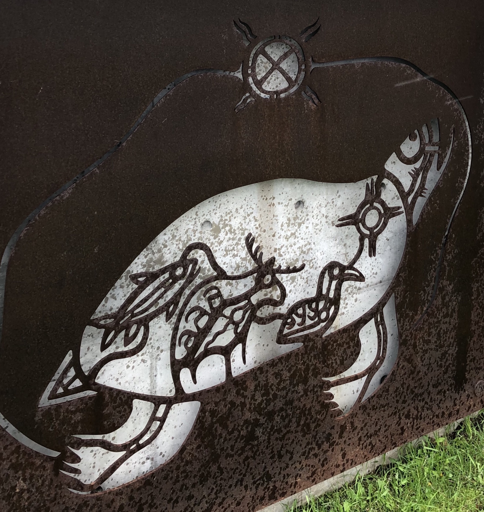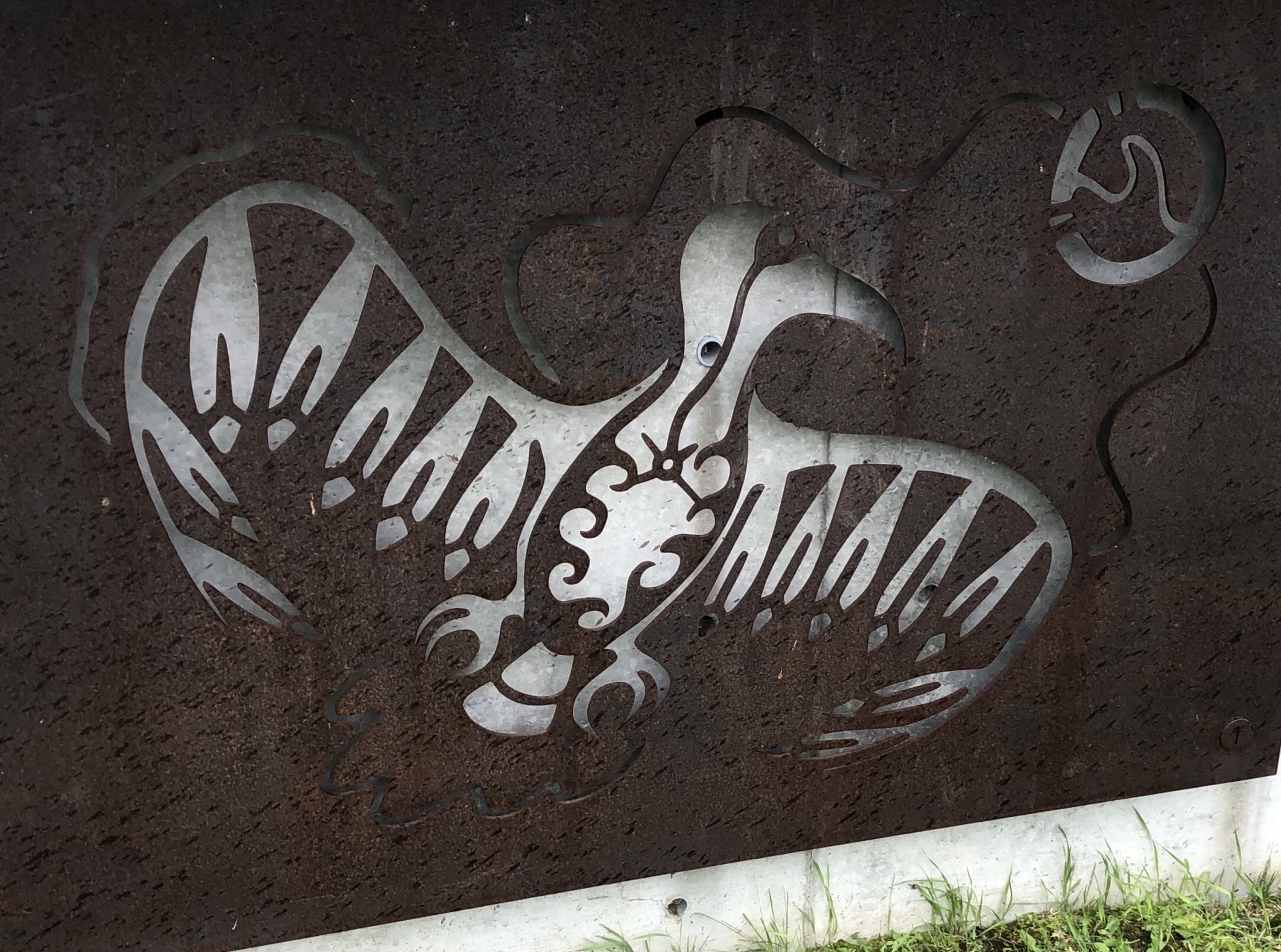 At the posted coordinates is a series of art panels within the Spirit Garden. A metal sheet affixed to the left end provides descriptions and numerical values of each panel. Using the numerical values 1-9 that are assigned to each panel, the cache can be found a short distance away at: