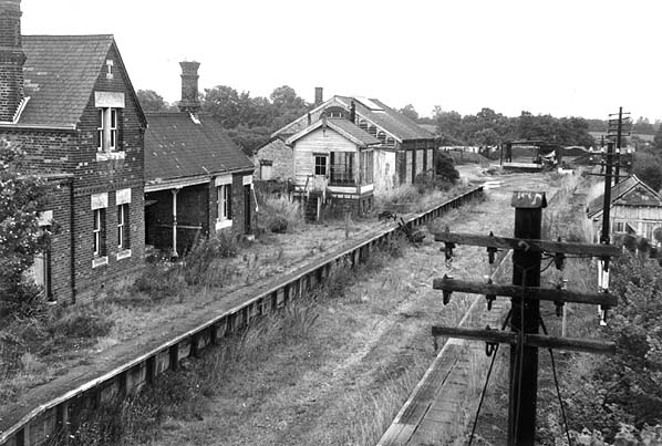 This view of the station buildings in 1973 (in the same direction as the modern view above) is 5 years after closure: