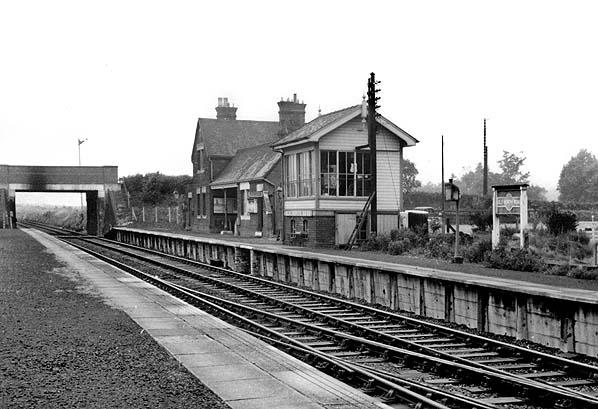 A view towards the bridge over the A1198 when the station was running in the 1960's: