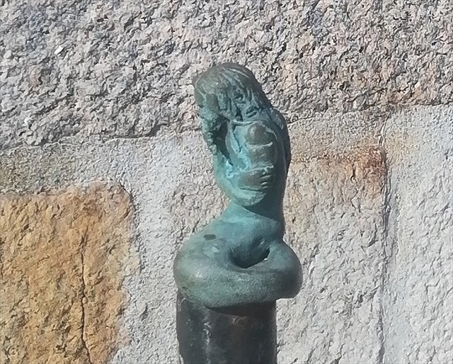 A very small and frustrated merman is sitting at the short dock in front of the town hall. The merman knows the hiding place of a treasure on one of the islands in the Oslofjord. If you try to talk to him, you are only met with silence and have to leave without gotten any wiser. But once there came some female creatures who managed to trick the secret out of him. Unfortunately for the merman, these female beings are more than willing to reveal the hiding place if you meet them, and that frustrates the merman.