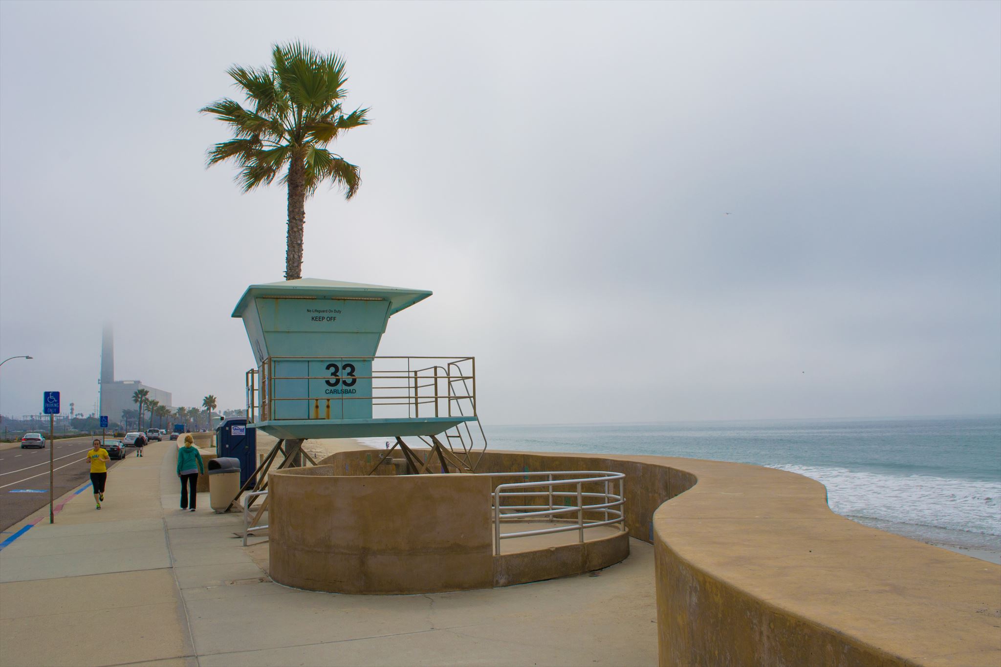 Tower 33 Not sure what the official name for this one is but I refer to it by the name of the life guard tower next to the sidewalk. South of Tamarack and across a channel is this long stretch of beach you can access from parking along the coast highway. It's closest to the iconic smoke stack of the retired Encina Power Station.