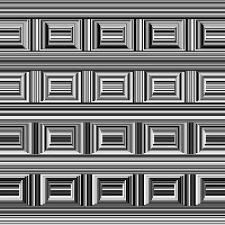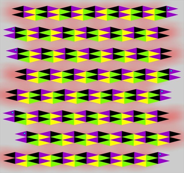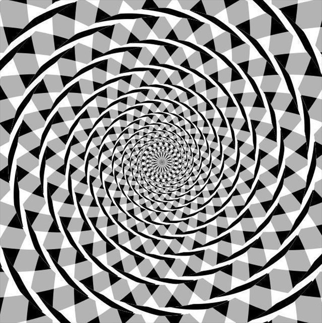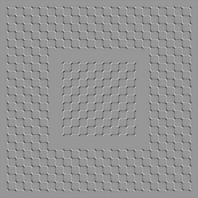 This image is not animated. Don't believe me? Try staring at just one part of the image and you'll see it will stop moving. This is an example of a "peripheral drift illusion." It is thought that this illusion occurs because of the slight differences in time it takes to process different luminances (how intense the light is from a particular area). This slight lag in mental processing tricks the brain into perceiving movement that isn't really there.