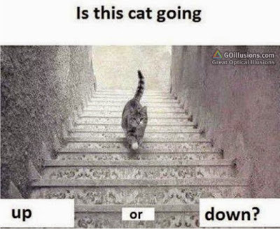 Look at this one for a while, It is drawn in a way that your brain will switch from seeing the cat coming down the stairs, and then it will sometimes look as if the cat is coming up the stairs. Can you see it switching?